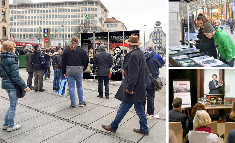 En Alemania, las filiales de CCHR realizaron eventos en Berlín, Frankfurt, Hamburgo, Stuttgart y Múnich, con procesiones por las víctimas del Holocausto y expositores colocados en una calle concurrida, con títulos como “Los hombres detrás de Hitler” y “La eugenesia y el Holocausto”. Todos los eventos pusieron al descubierto la verdadera fuente de las políticas mortales y acciones detrás del Holocausto, para que tales crímenes no vuelvan a ocurrir.