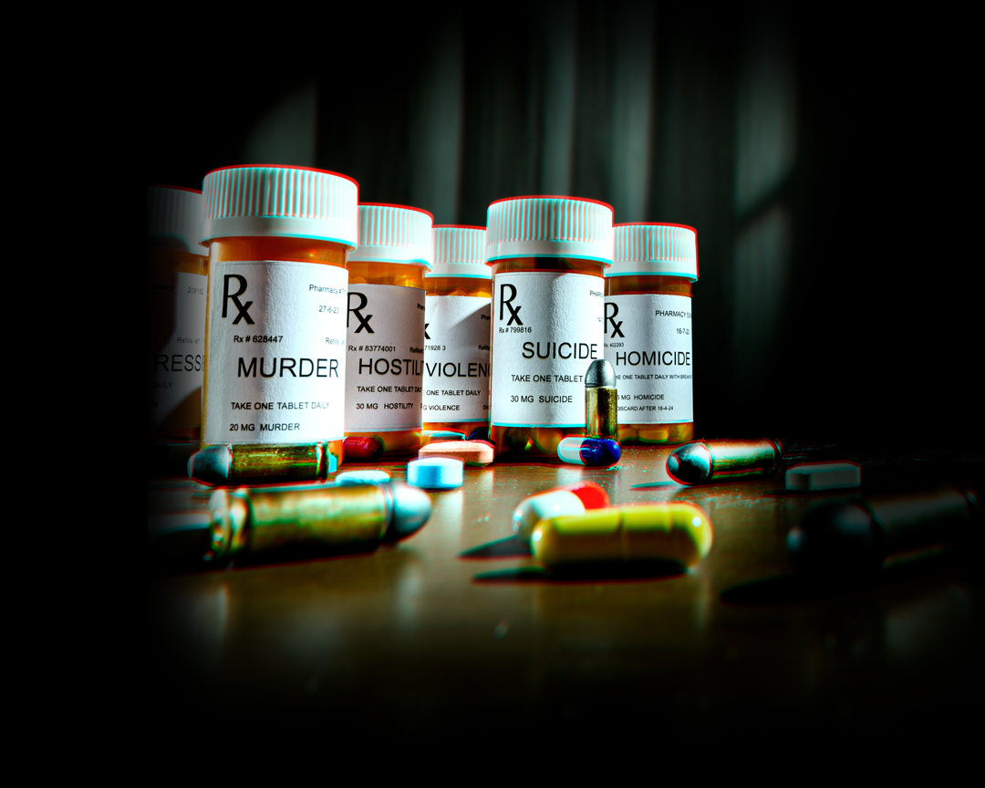 Un estudio reciente de 484 medicamentos en el mercado encontró que 31 estaban desproporcionadamente vinculados con la violencia. 24 de ellos eran medicamentos psiquiátricos.